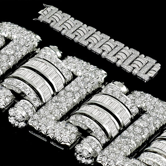 Estate 38.00ct Round And Baguette Cut Diamond 18k White Gold Bracelet