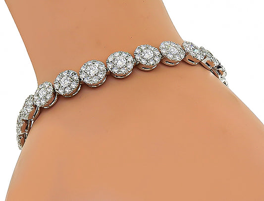 Vintage 10.00ct Round Cut Diamond Cluster 14k White Gold Bracelet