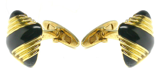 Antique English 9k Yellow 18k White Gold Diamond Onyx Cufflinks