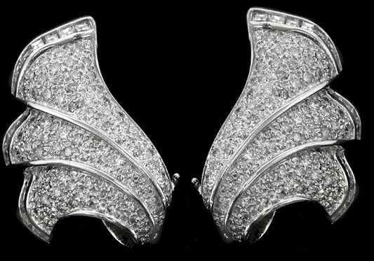 1970s 4.90ct Diamond 18k White Gold Fan Earrings