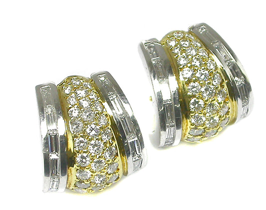 2.40ct Diamond Platinum 18k Yellow Gold Earrings