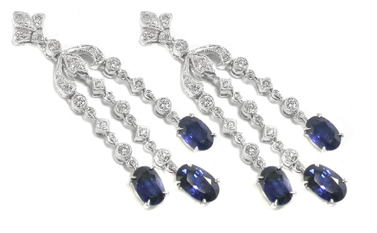 Art Deco Style 3.58ct Sapphire 0.60ct Diamond Chandelier Earrings