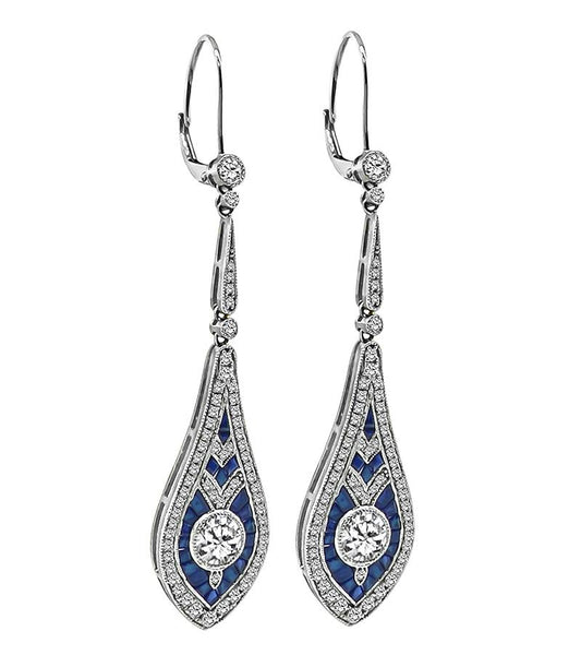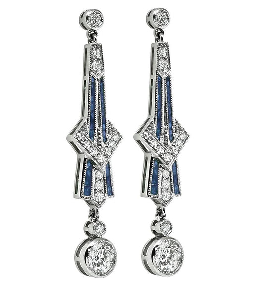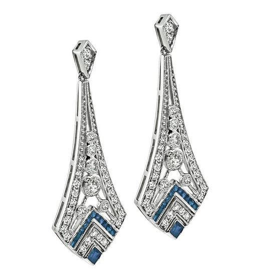 Art Deco Style 1.90cttw Diamond 0.83ct Sapphire Drop Earrings