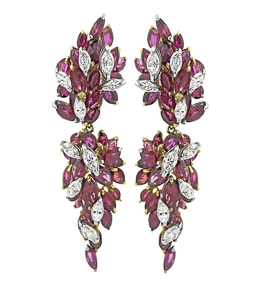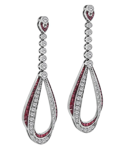 Estate 1.76ct Diamond 2.10ct Ruby Dangling Earrings