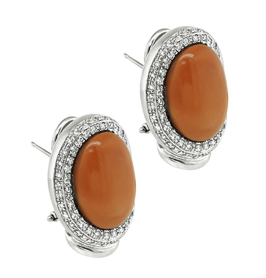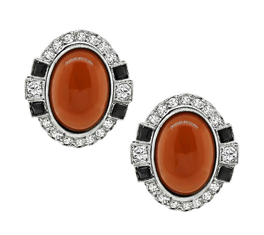 Vintage Coral 0.75ct Diamond Onyx Earrings