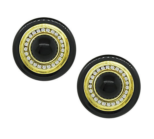 Estate Lagos 1.50ct Diamond Onyx Interchangeable Center Gold Earrings