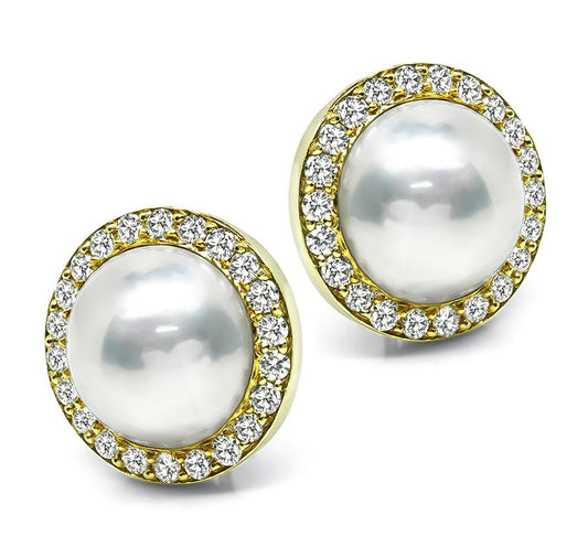 Estate Mabe Pearl 2.00ct Diamond Gold Earrings