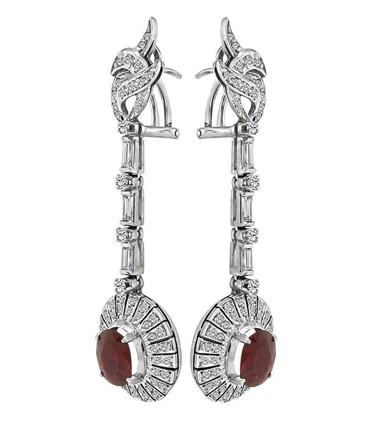 Vintage 5.00ct Ruby 2.50ct Diamond Drop Earrings