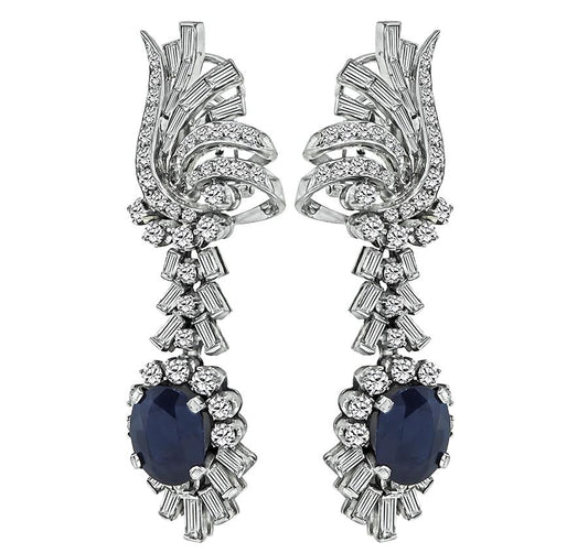 Vintage 6.00ct Sapphire 3.00ct Diamond Dangling Earrings