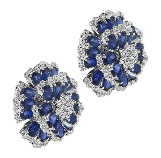 2.60ct Diamond 14.00ct Sapphire Flower Earrings