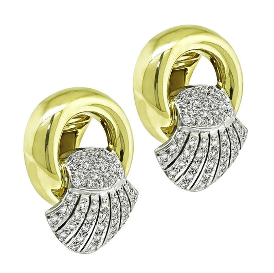 Estate 1.80ct Diamond Two Tone Gold Earrings