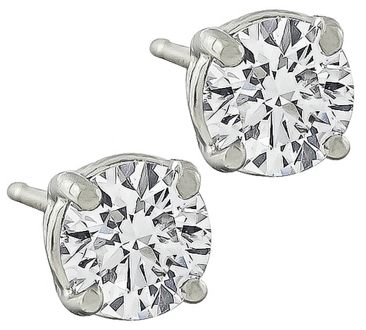 Estate 0.80ct Round Brilliant Diamond 14k White Gold Stud Earrings
