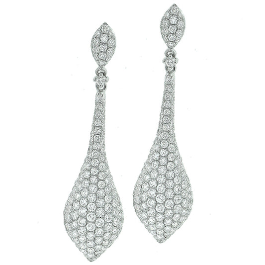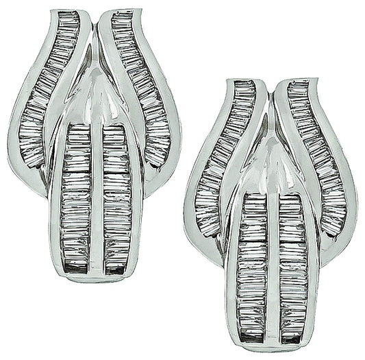 2.71ct French Cut Sapphire 1.58ct Round Cut Diamond 18k White Gold Drop Earrings