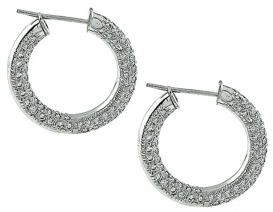 Vintage Round Cut Burmese Ruby Round Cut Diamond 14k White Gold Hoop Earrings