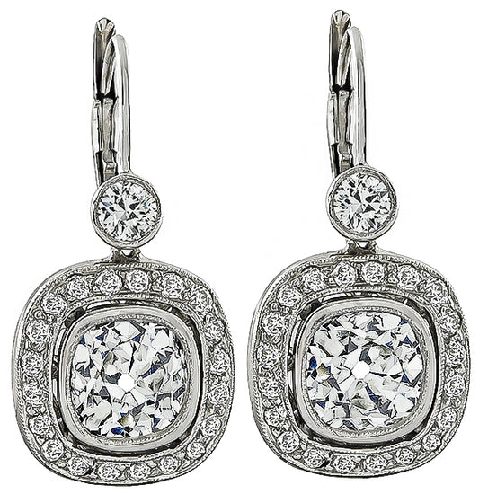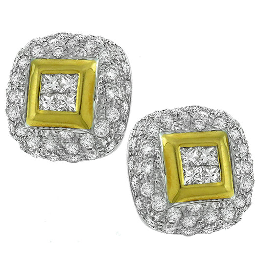 Estate 2.00ct Princess & Round Cut Diamond 18k White & Yellow Gold Earrings