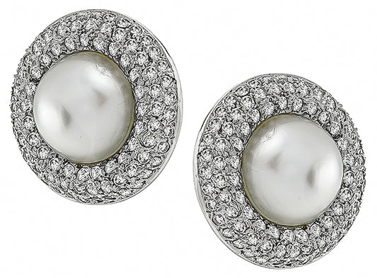 Estate Mabe Pearl 3.00ct Diamond Earrings