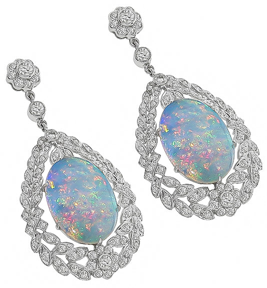 Antique Style 6.00ct Opal 1.15ct Diamond Chandelier Earrings