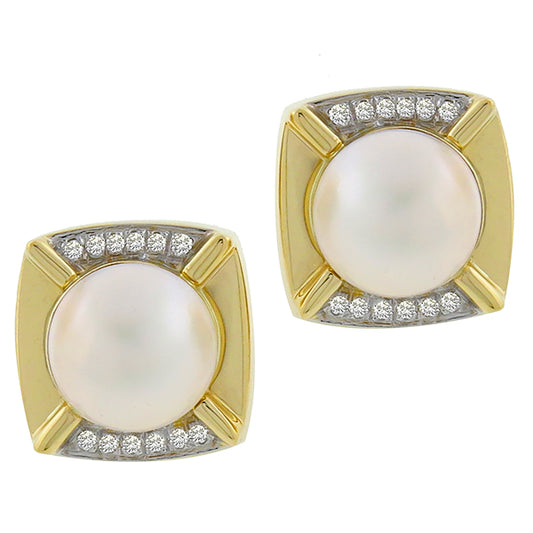 Vintage Mabe Pearl 1.00ct Diamond Earrings