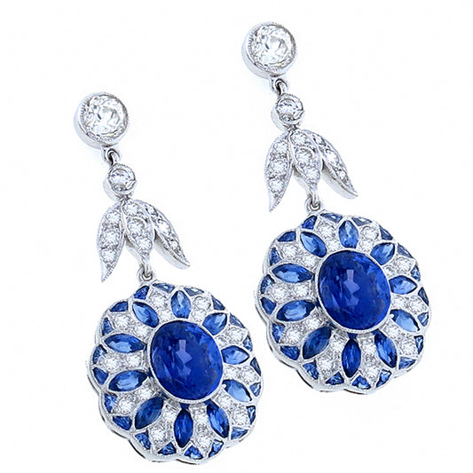 Antique Style 6.36ct Sapphire 1.58ct Diamond Earrings