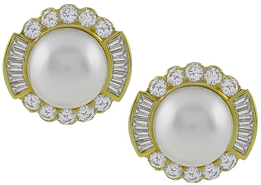 2.40ct Diamond & South Sea Pearl Gold Earrings