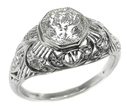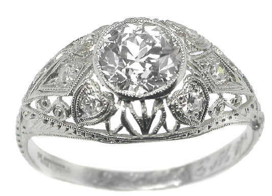 Edwardian Style 1ct European Cut Diamond Platinum Engagement Ring