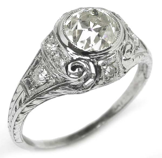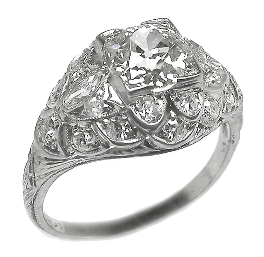 Edwardian 1.46ct Old European Cut Diamond Platinum Engagement Ring