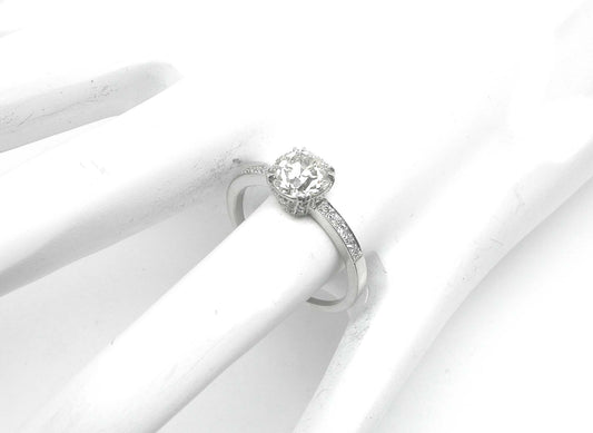 Edwardian 1.35ct Cushion Cut Diamond 18k White Gold Engagement Ring