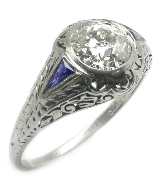 Edwardian 1.09ct Diamond & Sapphire 14k White Gold Engagement Ring