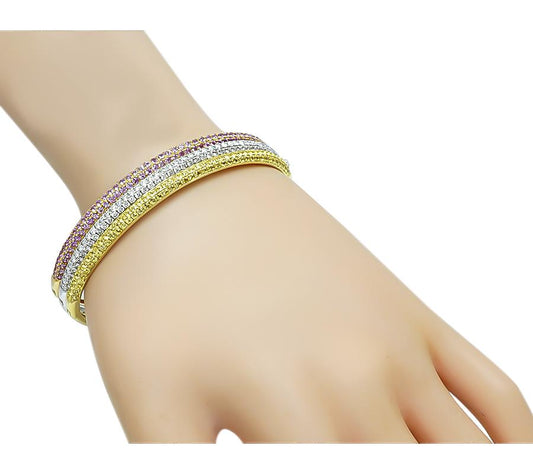 Estate 8.00ct Pink and Yellow Sapphire 3.30ct Diamond Three Tone Gold Bangle