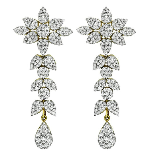 Estate 6.50ct Diamond 18k Yellow and White Gold Drop Earrings