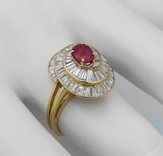 Vintage 0.75ct Ruby 1.10ct Diamond Gold Swirl Ring