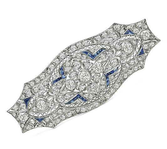 Art Deco 4.00ct Diamond Sapphire Platinum Pin