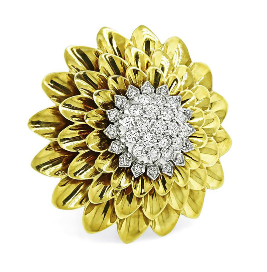 Estate 2.00ct Diamond Gold Flower Pin