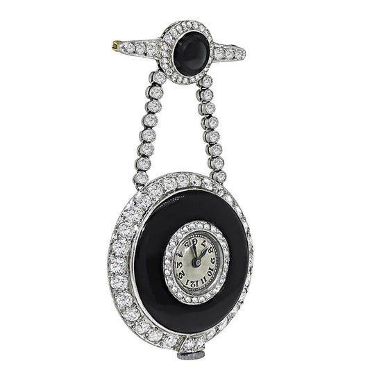 Art Deco 3.80ct Diamond Onyx Pocket Watch / Pin