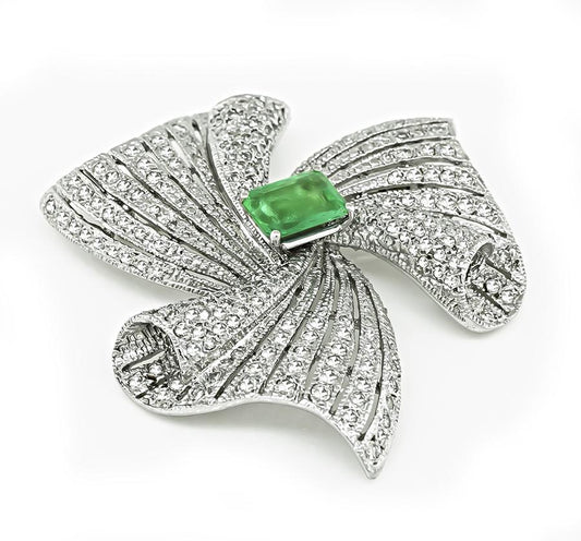 Estate 2.50ct Colombian Emerald 6.00ct Diamond Pin