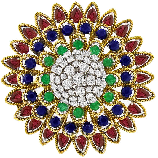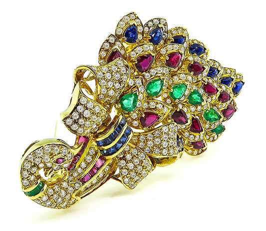 Estate 9.29ct Emerald Ruby Sapphire 4.53ct Diamond Peacock Pin