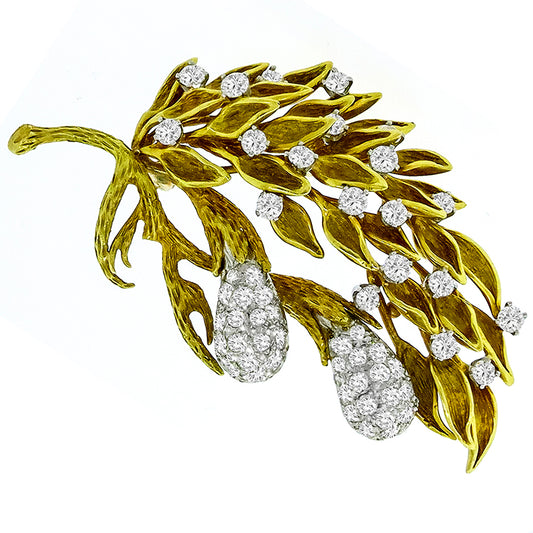 Vintage 3.50ct Diamond Foliage Pin