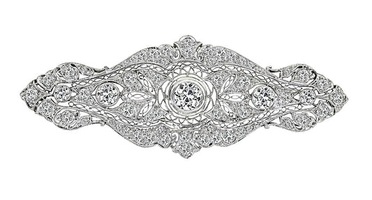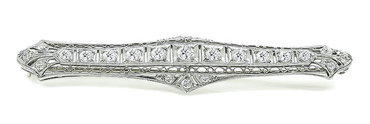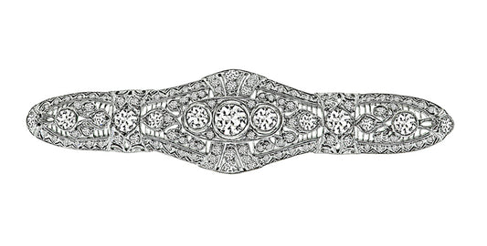 Art Deco Old Mine Cut Diamond Platinum Bar Pin
