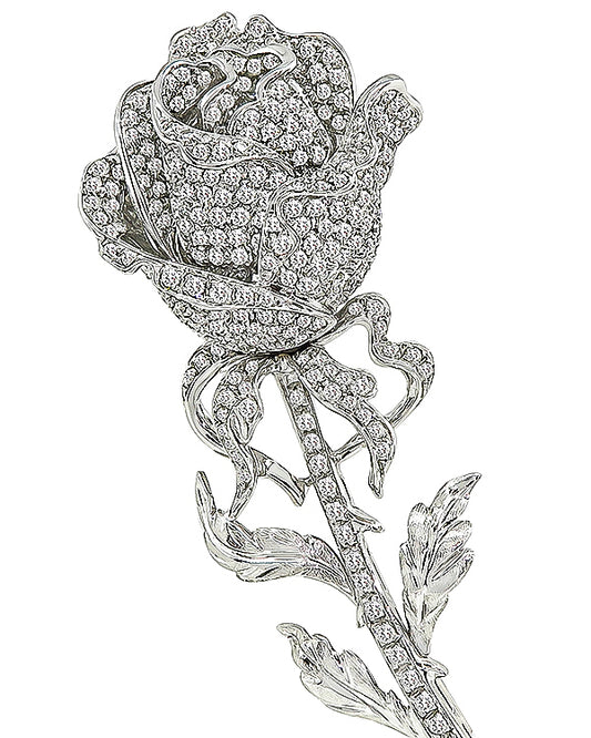 Estate 4.00ct Diamond Long Stem Rose Pin