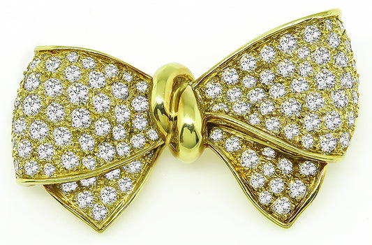 Estate 5.00ct Diamond Gold Bow Pin