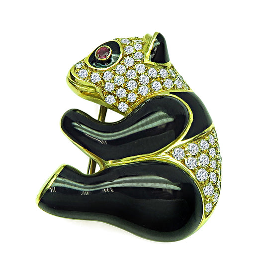 Estate 1.50ct Diamond Enamel Panda Pin