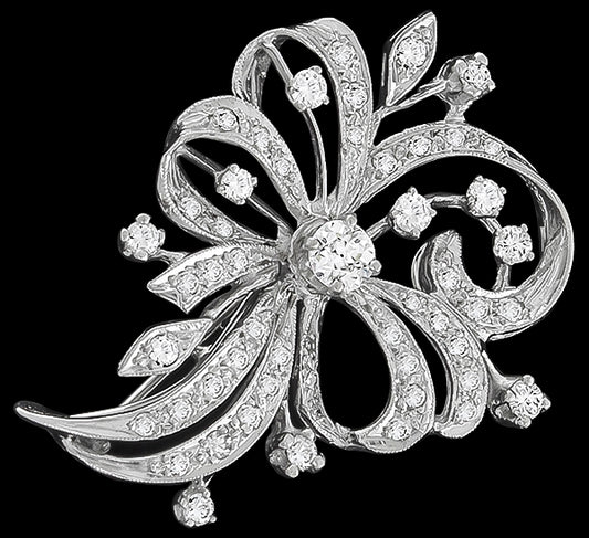 Vintage 6.85ct Diamond Floral Pin