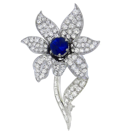 Vintage 1.20ct Sapphire 2.50ct Diamond Gold Floral Pin