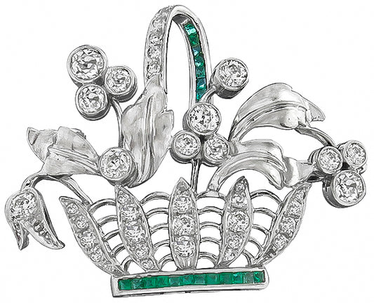 Vintage 1.00ct Diamond Emerald Flower Basket Pin