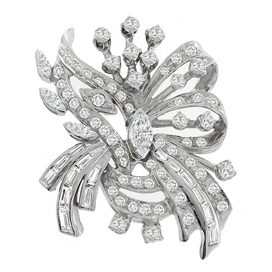1950s 4.60ct Diamond Platinum Bouquet Pin/ Pendant