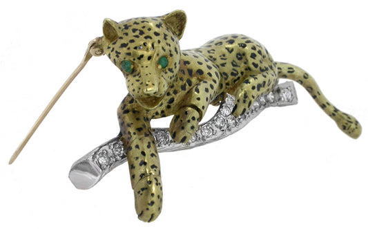 1960s 1.00ct Diamond Enamel 18k Gold Panther Pin