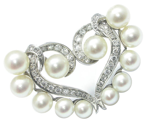 1950s Pearl Diamond 14k White Gold Bow Pin