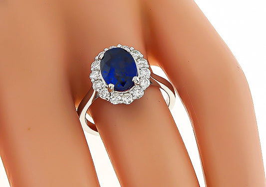 Estate 3.06ct Sapphire 0.50ct Diamond Engagement Ring