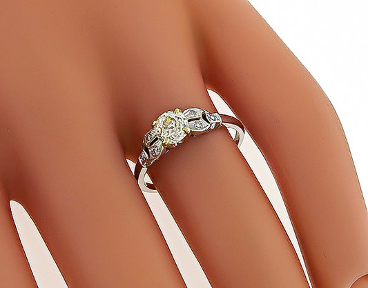 Antique 0.69ct Light Fancy Yellow Diamond Engagement Ring