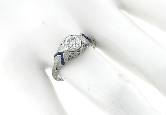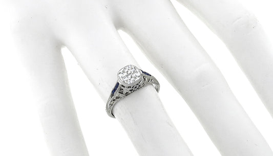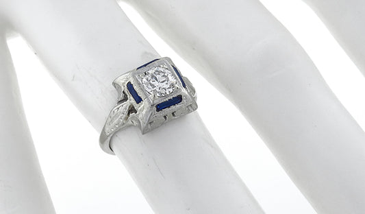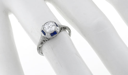 Art Deco Style 0.60ct Diamond 0.68ct Sapphire Engagement Ring